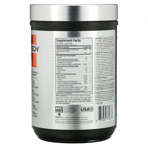 Не предназначено для лиц младше 18 лет. Не принимать в период беременности и кормления грудью. Проконсультируйтесь с врачом при наличии каких-либо заболеваний перед началом диеты или программы тренировок. Одна порция этого продукта содержит столько же кофеина, сколько 4 чашки кофе. Люди, чувствительные к кофеину, могут испытывать следующие симптомы, включая (но не ограничиваясь ими) беспокойство, нервозность, тремор, головную боль, беспокойство, учащенное сердцебиение, учащенное сердцебиение или трудности со сном. Не сочетайте с другими источниками кофеина или стимуляторами. Некоторые люди могут испытывать безобидное покалывание от концентрированной рабочей дозы бета-аланина. Хранить в недоступном для детей месте.