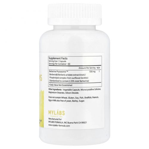 Описание товара Mylabs, Berberine MS, высокая усвояемость, 550 мг, 60 капсул