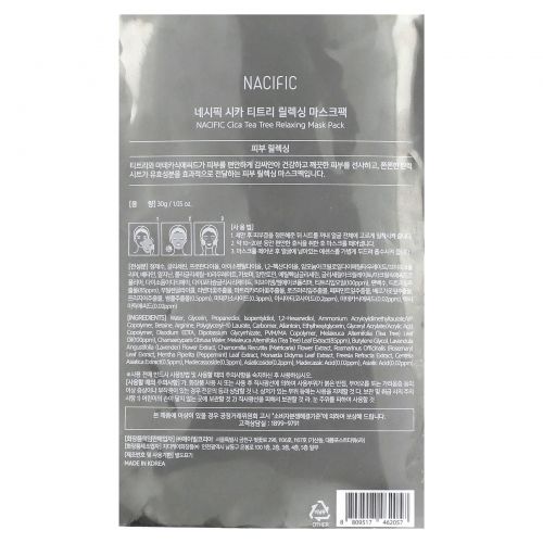 Описание товара Nacific, Расслабляющая маска для лица Cica Tea Tree, 1 листовая маска, 30 г (1,05 унции)