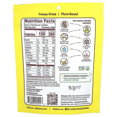 Описание товара Natierra, органический сублимированный шоколад с бананом, 71 г (2,5 унции)