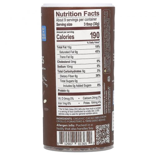 Описание товара Natierra, шейкер для органических какао-бобов, 142 г (5 унций)