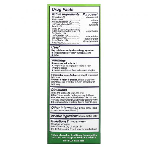 Описание товара NatraBio, bioAllers, лечение аллергии, шерсть животных и перхоть, 1 жидкая унция (30 мл)