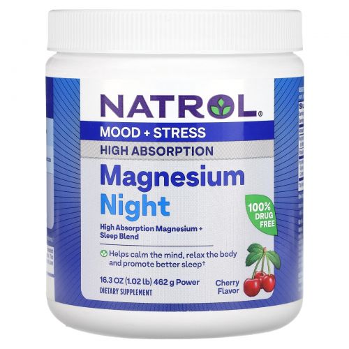 Описание товара Natrol, Magnesium Night, со вкусом вишни, 462 г (16,3 унции)