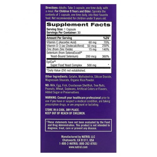 - Изготовлено с клинически проверенным EpiCor для укрепления иммунитета