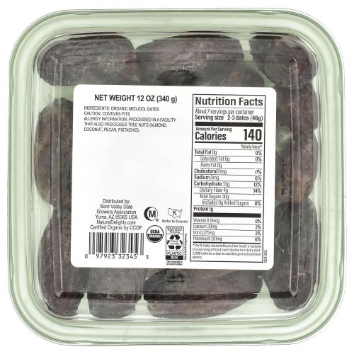 Natural Delights, Органические свежие финики Medjool, цельные, 340 г (12 унций)