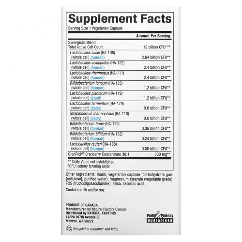 Описание товара Natural Factors, Абсолютный пробиотик, женская формула, 60 вегетарианских капсул