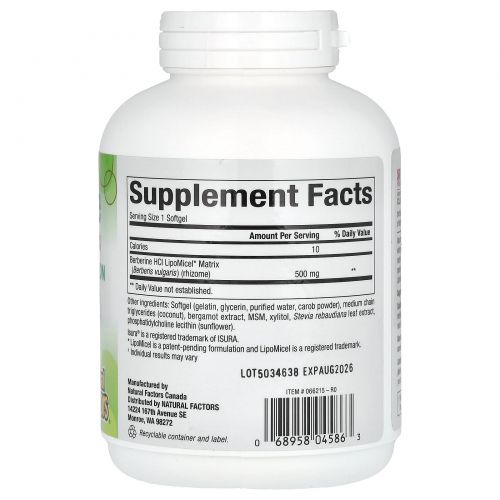 Natural Factors, берберин, LipoMicel Matrix, 500 мг, 90 капсул с жидкостью