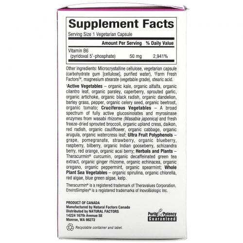 Описание товара Natural Factors, BioCoenzymated, B6, пиридоксал-5-фосфат, 50 мг, 30 вегетарианских капсул