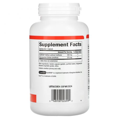 Описание товара Natural Factors, МСМ и глюкозамин сульфат, 180 капсул