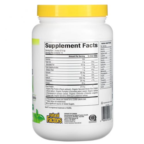 Описание товара Natural Factors, Raw Organic 100% Plant-Based Protein, Natural Unflavored, 0.9 lb (417 g)