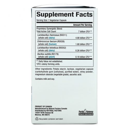 Кишечнорастворимая оболочка требуется не для всех пробиотических штаммов. Что касается устойчивости к кислоте желудка, не все штаммы одинаковы. Natural Factors тщательно отобрала штаммы, устойчивые к кислотам, поэтому их можно употреблять в любое время, с едой или без, и доставлять их в кишечник целыми и невредимыми. Наши штаммы проверяются на их жизнеспособность в желудке, чтобы гарантировать оптимальное всасывание и эффективность.