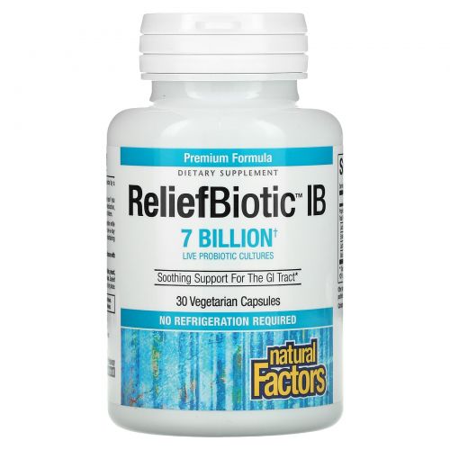 Natural Factors, ReliefBiotic, 7 миллиардов активных клеток, 30 вегетарианских капсул