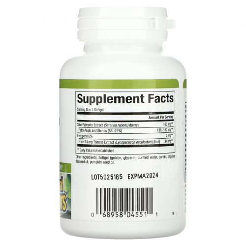 Описание товара Natural Factors, Со пальметто с ликопеном, 60 мягких капсул