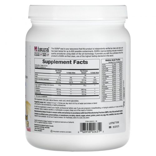 Описание товара Natural Factors, Total Body Collagen, биоактивные пептиды, апельсин, 100 мг, 500 г (1 фунт 1 унция)