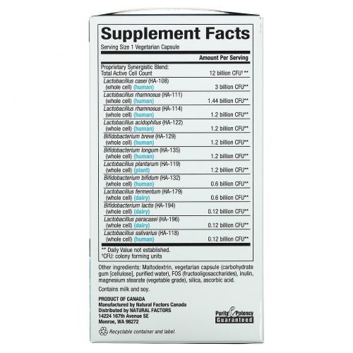 Описание товара Natural Factors, Ultimate Probiotic, 12/12 Formula, 12 Billion, 60 Vegetarian Capsules