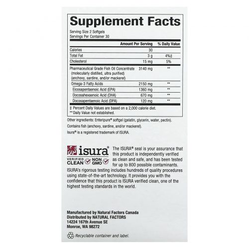 Описание товара Natural Factors, Ultra Strength One-per-Day RxOmega-3, 900 mg, 60 Enteripure Softgels