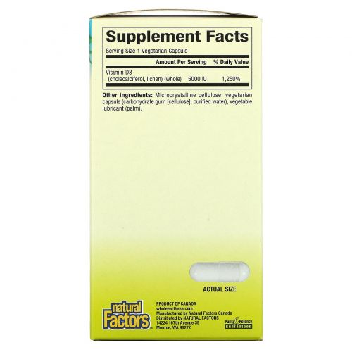 Описание товара Natural Factors, Whole Earth & Sea, Vegan Bioenhanced Vitamin D3, 5,000 IU, 60 Vegetarian Capsules