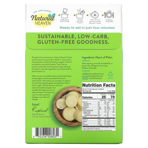 Описание товара Natural Heaven, Hearts of Palm, Spaghetti, 9 oz (255 g)