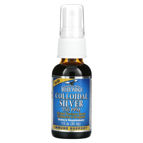 Natural Path Silver Wings, Коллоидное серебро, спрей с травяной настойкой, 150 ч/млн, 1 жидк. унц. (30 мл)