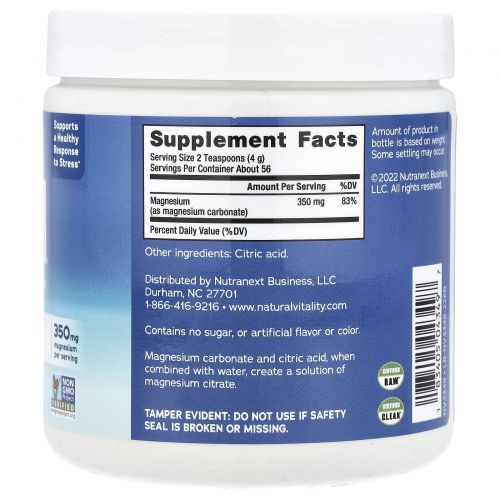 Описание товара Natural Vitality, CALM, антистрессовая смесь для напитков, без добавок, 226 г (8 унций)