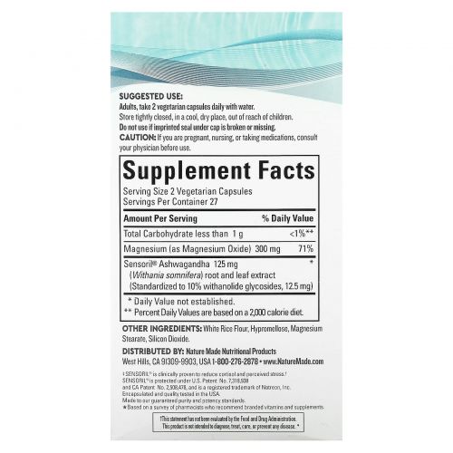 Разработана с учетом научных данных. Она содержит магний для расслабления тела и клинически подтвержденную ашваганду Sensoril® для снижения стресса‡.