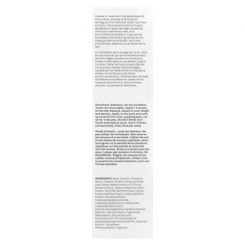 Несмываемое средство, которое выходит за рамки поверхностного и активно обращает вспять повреждение волос на молекулярном уровне всего за четыре минуты. Эта концентрированная формула предназначена для восстановления повреждений, вызванных химической обработкой, высокой температурой и факторами окружающей среды. Ощутите мгновенный и стойкий результат, поскольку маска восстанавливает силу, мягкость, гладкость, эластичность и упругость волос.