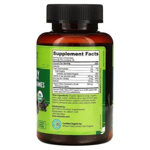 Описание товара NATURELO, Бузина, жевательные мармеладки для поддержки иммунитета, 60 веганских жевательных таблеток