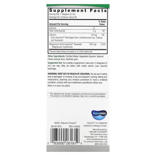 Описание товара Nature's Answer, Магний на растительной основе, Вкус ванили и сливок, 500 мг, 16 ж. унц.(480 мл)