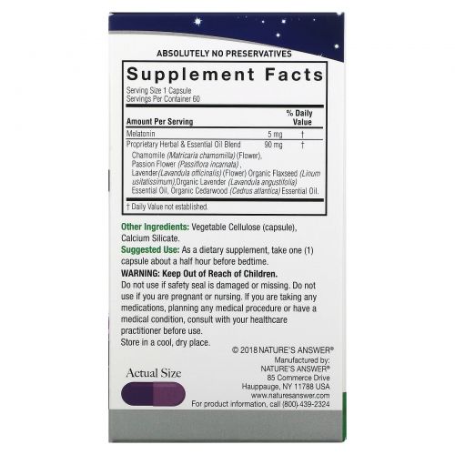 Описание товара Nature's Answer, Melatonin +, 5 mg, 60 Vegetarian Capsules