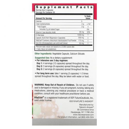 Описание товара Nature's Answer, UT Answer, 651,66 мг, 90 вегетарианских капсул