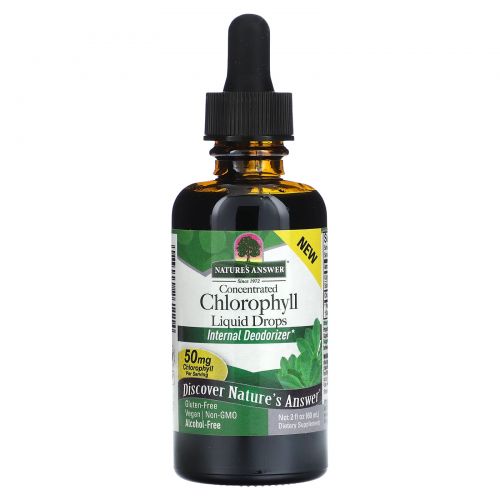 Описание товара Nature's Answer, Жидкие капли с концентрированным хлорофиллом, 50 мг, 60 мл (2 жидк. Унции)