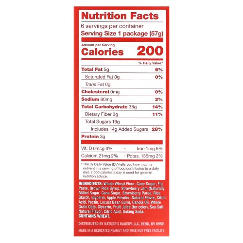 Описание товара Nature's Bakery, Инжирный батончик, клубника, 6 двойных пакетиков по 57 г (2 унции)