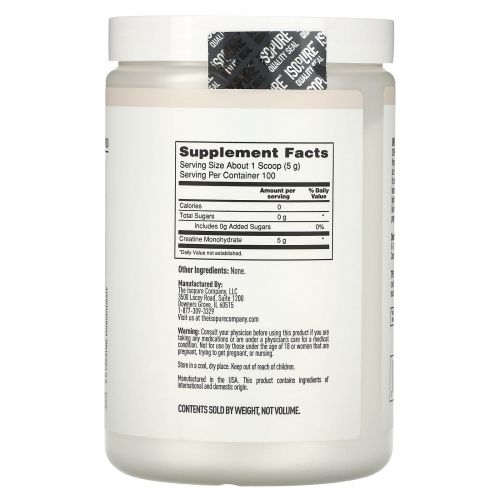 Isopure Creatine Monohydrate powder has no calories, added sugars or fillers. Highly researched, Creatine Monohydrate has been shown to support muscle size, strength, and power when combined with high-intensity activities. It's unflavored and perfect for stacking into your post-workout protein shake or favorite flavored beverage. All Isopure products are manufactured from the highest quality raw materials, under strict supervision and in accordance with Good Manufacturing Practices. Extensive quality control procedures ensure proper purity, dissolution and potency.