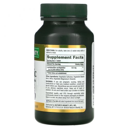 Описание товара Nature's Bounty, Ацидофилус пробиотик, 120 таблеток
