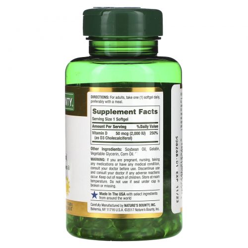 Описание товара Nature's Bounty, D3, 50 mcg (2000 IU), 240 Rapid Release Softgels