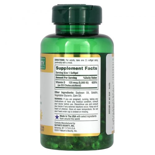 Описание товара Nature's Bounty, D3-5000 IU, Maximum Strength, 240 Softgels