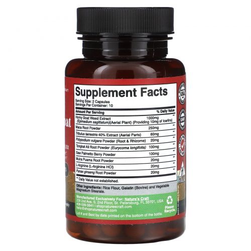 Описание товара Nature's Craft, горянка крупноцветковая, улучшенный комплекс, 20 капсул