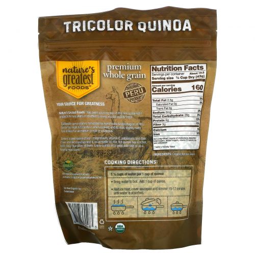 Описание товара Nature's Greatest Foods, Органическая трехцветная киноа, 454 г (16 унций)