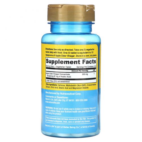 Nature's Life, Яблочный уксус, 250 мг, 100 таблеток