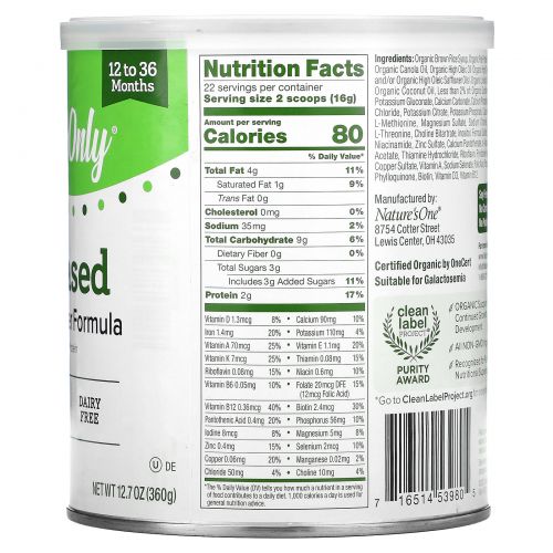 Описание товара Nature's One, Baby's Only, смесь для малышей с гороховым протеином, от 12 до 36 месяцев, 360 г (12,7 унции)