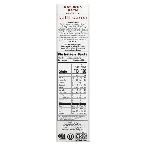Описание товара Nature's Path, Keto Cereal, Cinnamon Toast, 9 oz (255 g)