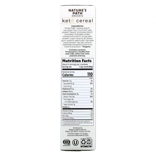 Описание товара Nature's Path, Органические кето-хлопья, темный шоколад, 255 г (9 унций)