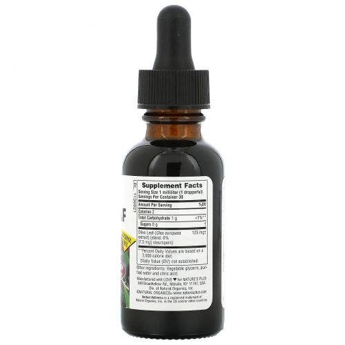 Описание товара Nature's Plus, Herbal Actives, из листьев оливы, без спирта, 1 жидкая унция (30 мл)