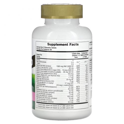 Жевательные мультивитамины без сахара Animal Parade® Gold для детей выводят на новый уровень этот популярный состав с мультивитаминами и микроэлементами! Насыщенная невероятно аппетитным натуральным вкусом арбуза, каждая порция этого забавного жевательного продукта в форме животных теперь содержит 500 МЕ витамина D3, повышенную дозу микроэлементов, ферментов, пробиотиков и множество натуральных цельных продуктов.