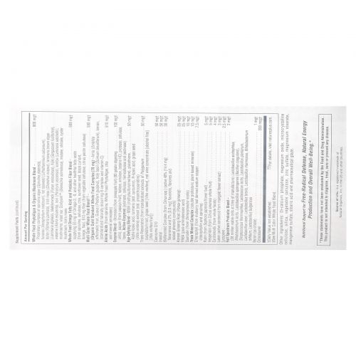 | ** Процент от суточной нормы при условии потребления 2000 калорий в день. † Суточная норма не определена. *** Хелат из цельного коричневого риса. ‡ См. Раздел «Многоцветная смесь из цельных продуктов». | ||