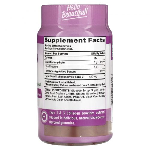 Описание товара Nature's Truth, Beauty Collagen, жевательные мармеладки с коллагеном, типы 1 и 3, натуральная клубника, 60 жевательных таблеток