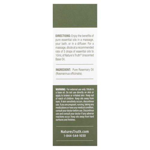 Описание товара Nature's Truth, Чистое эфирное масло, очищающий розмарин, 15 мл (0,51 жидк. Унции)