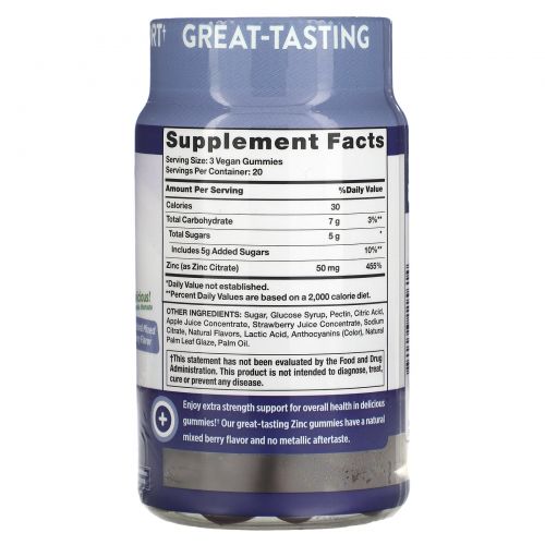 Описание товара Nature's Truth, Цинк повышенной силы действия, натуральная ягодная смесь, 50 мг, 60 веганских жевательных мармеладок