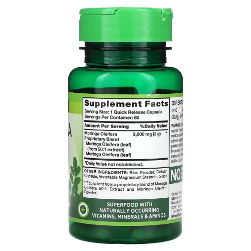 Описание товара Nature's Truth, Moringa Oleifera, 3000 мг, 60 капсул с быстрым высвобождением