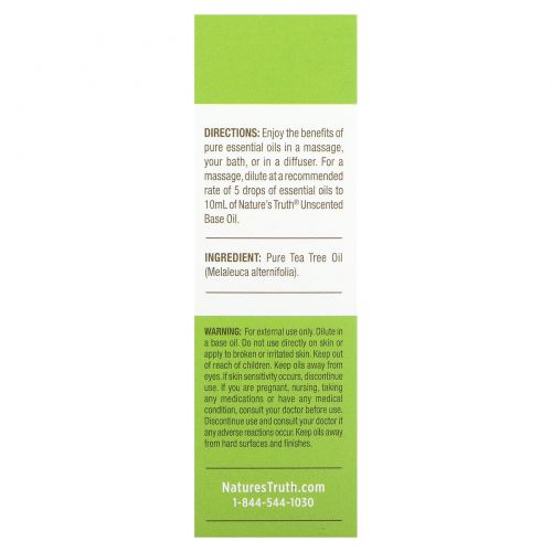 Описание товара Nature's Truth, Pure Essential Oil, очищающее масло чайного дерева, 15 мл (0,51 жидк. Унции)